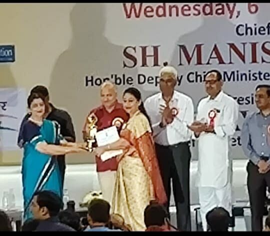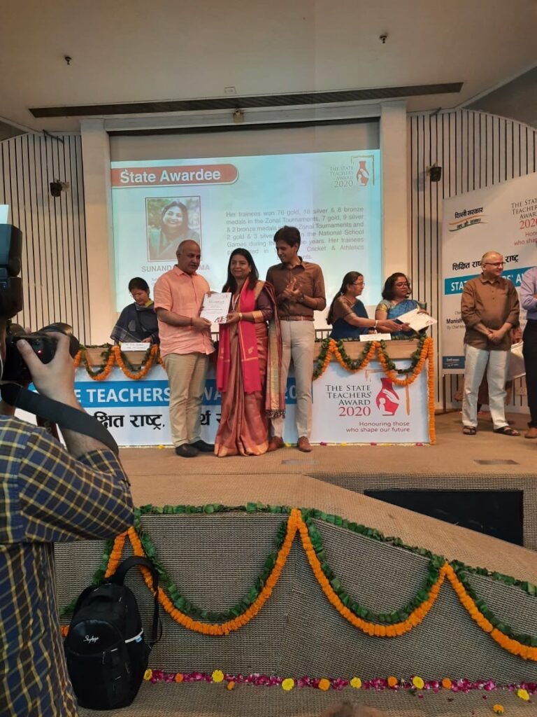 Mrs. Sunanda Sharma, Physical Education Teacher awarded by Dy. Chief Minister of Delhi Mr. Manish Sisodia in the year 2020.