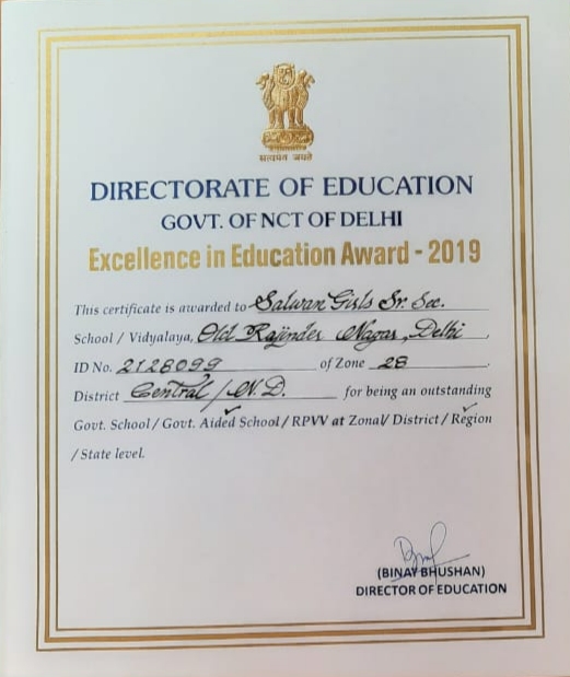 Our school has received the most coveted Excellence in Education Award by Directorate of Education for the Region’s Best School. It is matter of great pride that from all over Delhi only 2 schools have received this prestigious award.