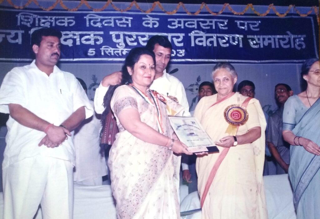 Mrs. Prem Nijhawan, PGT (Vocal Music) awarded by the then Chief Minister of Delhi Mrs. Sheila Dikshit in the year 2003.