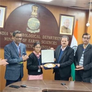 IMD organised an inter school poster making and painting competition for students and the winners and participants were honored at the events organised by the IMD department on 14 Jan 2025 at Bharat Mandapam , marking the  150th foundation day of the department. The event was inaugurated by the honorable PM. The winners Ipsa Santra and Sneha Santra were awarded with cash prize and certificates and received accolades for their excellent performance.