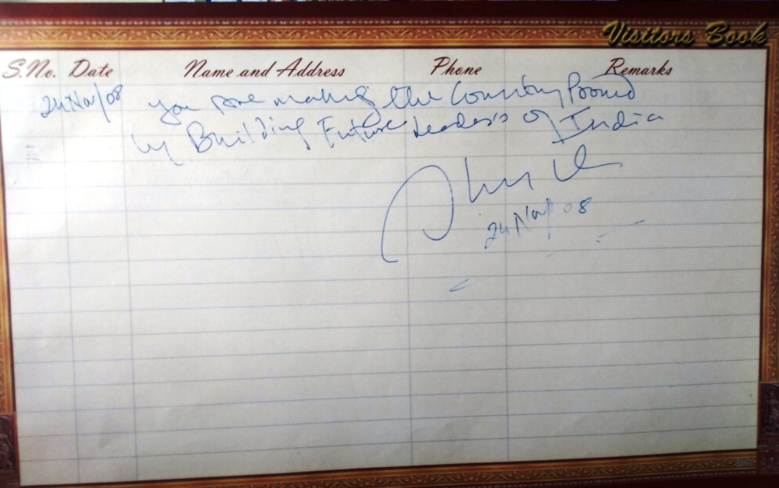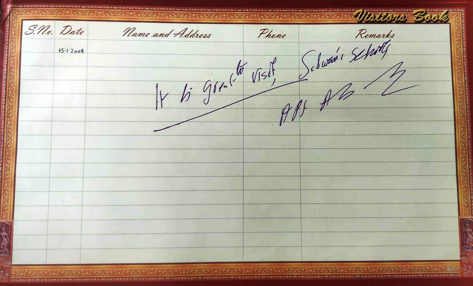 | Dr. A P J Abdul Kalam : Autograph presented by Hon’ble President during an interactive session on 15.01.2008 | President of India | Click Here |