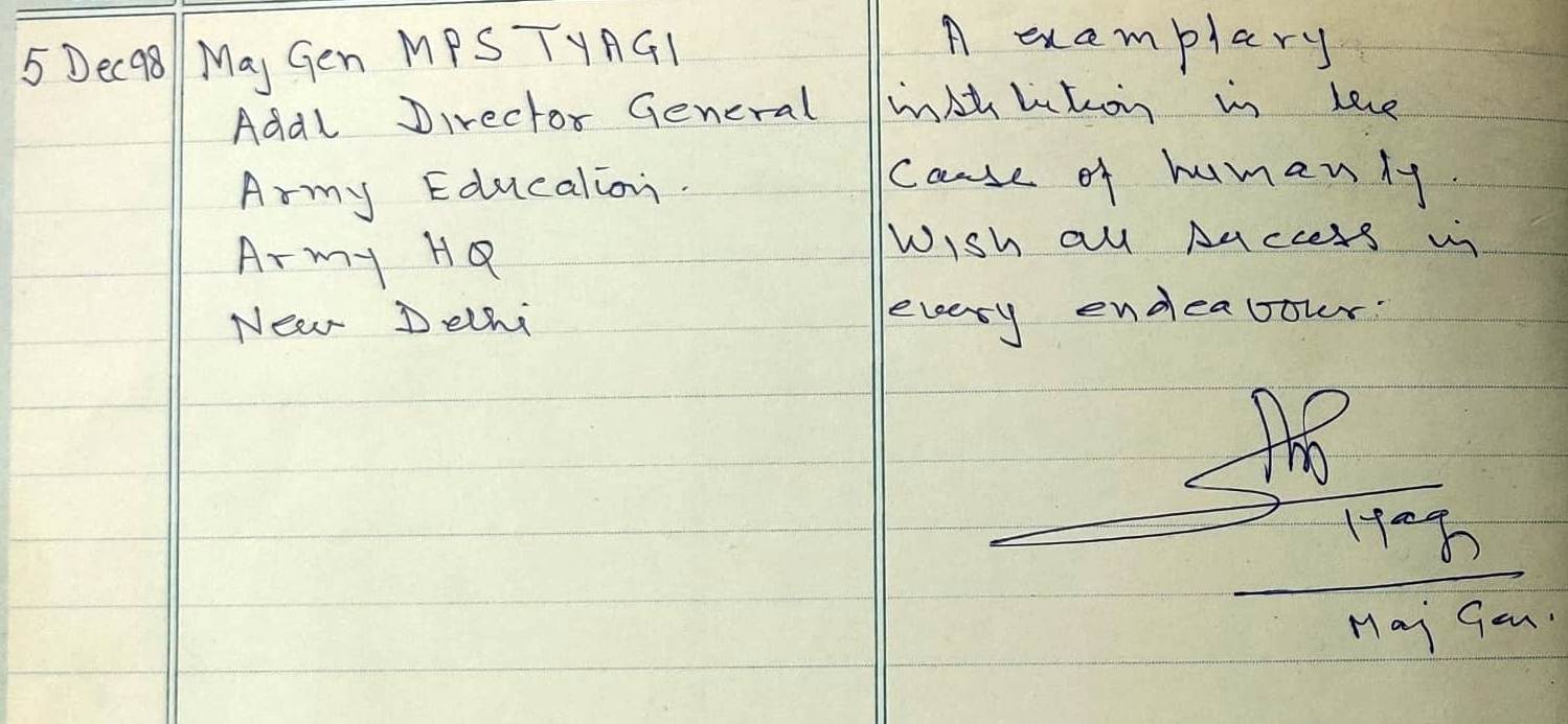 Maj. Gen. M P S Tyagi: Chief Guest on the occasion of Founder’s Day celebration on 05.12.1998 |