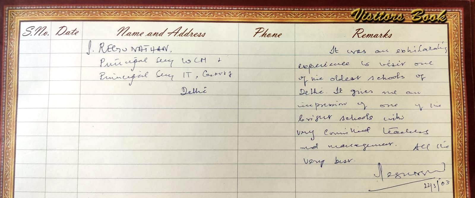 | Mr. S. Regunathan : Visited our school for an interactive session on 22.03.2003 | Principal Secretary IT, Govt. of Delhi | Click Here |
