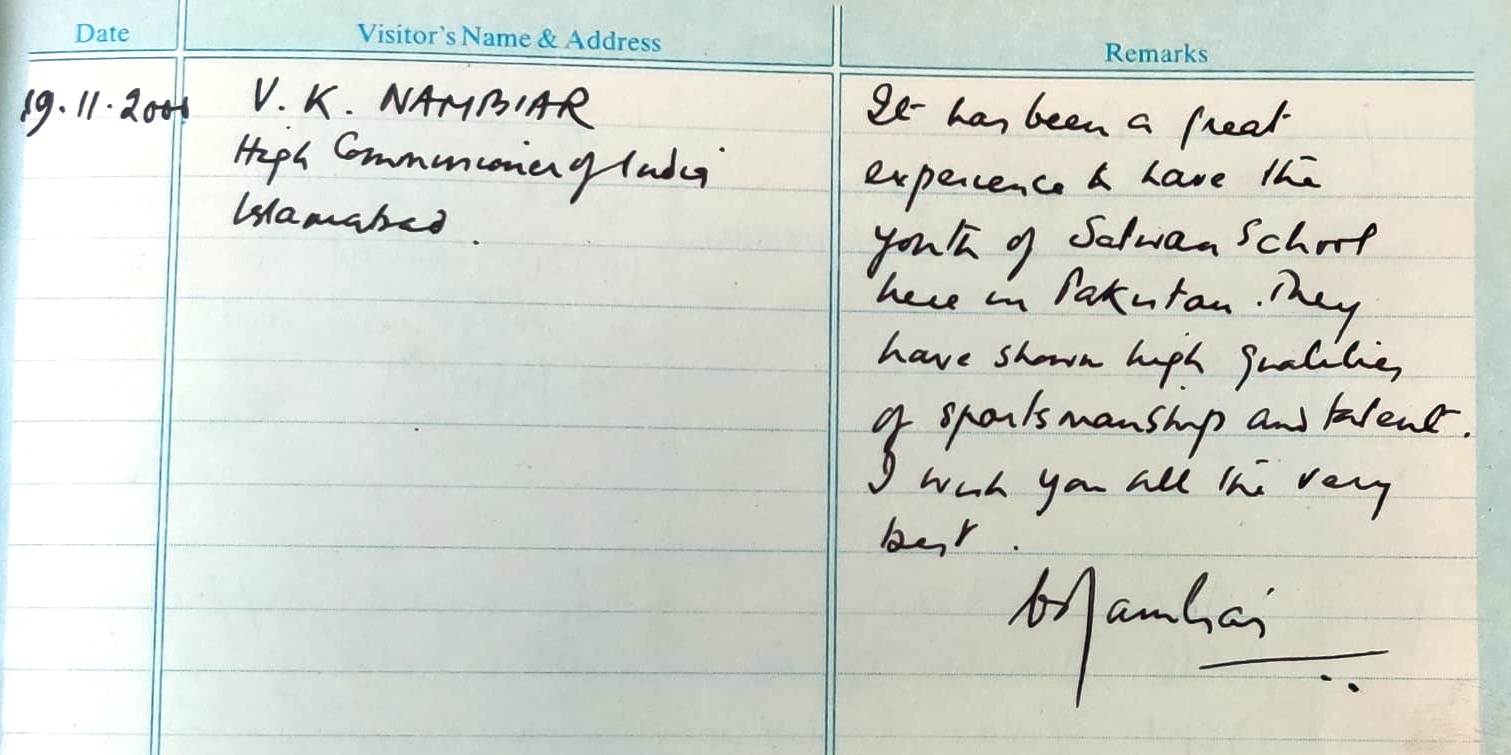 | Mr. V. K. Nambiar : Chief Guest for Annual Day celebration on 19.11.2000 | High Commissioner of India; Islamabad | Click Here |