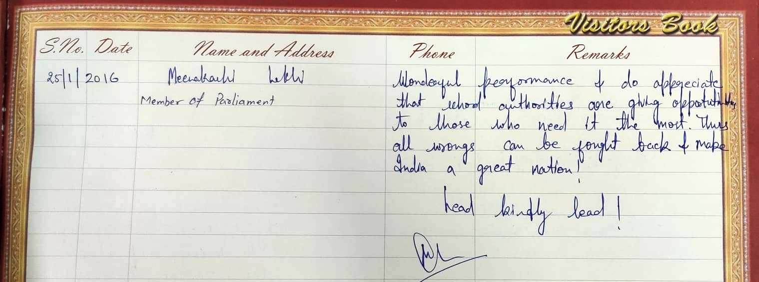 | Ms. Meenakshi Lekhi : Chief Guest for Republic Day celebration on 25.01.2016 | Member of Parliament | Click Here |