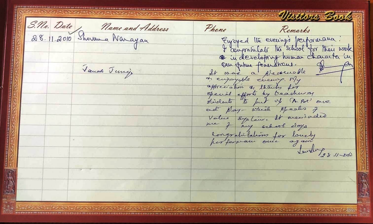 | Ms. Shovana Narayan as Chief Guest and Ms. Janak Juneja, IAS (Retd) as Guest of Honour for Annual Day function on 28.11.2010 | Indian Kathak Dancer | Click Here |